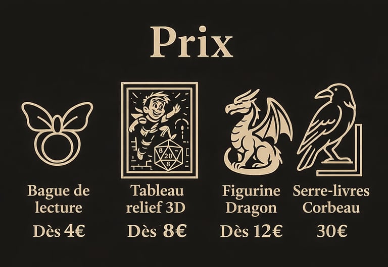 OBJETS imprimés, tableaux en relief, figurines et déco fonctionnelle. Du prototype au cadeau prêt à offrir.